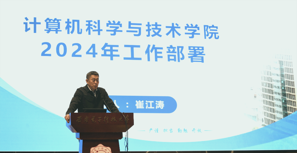 执行院长崔江涛解读了学院2024年工作要点,在分析学院现状的基础上详细介绍了学院2024年“十个方面建设”,全面部署了“七项重点任务”,一是不折不扣落实落细巡视整改任务,二是抓实抓紧干部作风建设专项行动,三是大力推动本科人才培养质量提升行动,四是加快实施特色化示范性软件学院建设质量提升计划,五是不断深化研究生学位核心课程建设,六是开展人才引育数质提升行动,七是推动“成长在西电”自我发展提升计划。崔江涛谈到,要加强重点工作落实,进一步整合资源、系统谋划,着力推动核心课程建设、有组织科研、高层次人才引育、中外合作办学等重点工作取得突破;要找准定位埋头苦干,全院教职工要更加积极主动地融入学校发展大局,积极参与学院建设,主动作为,奋力谱写一流学院建设发展新篇章。