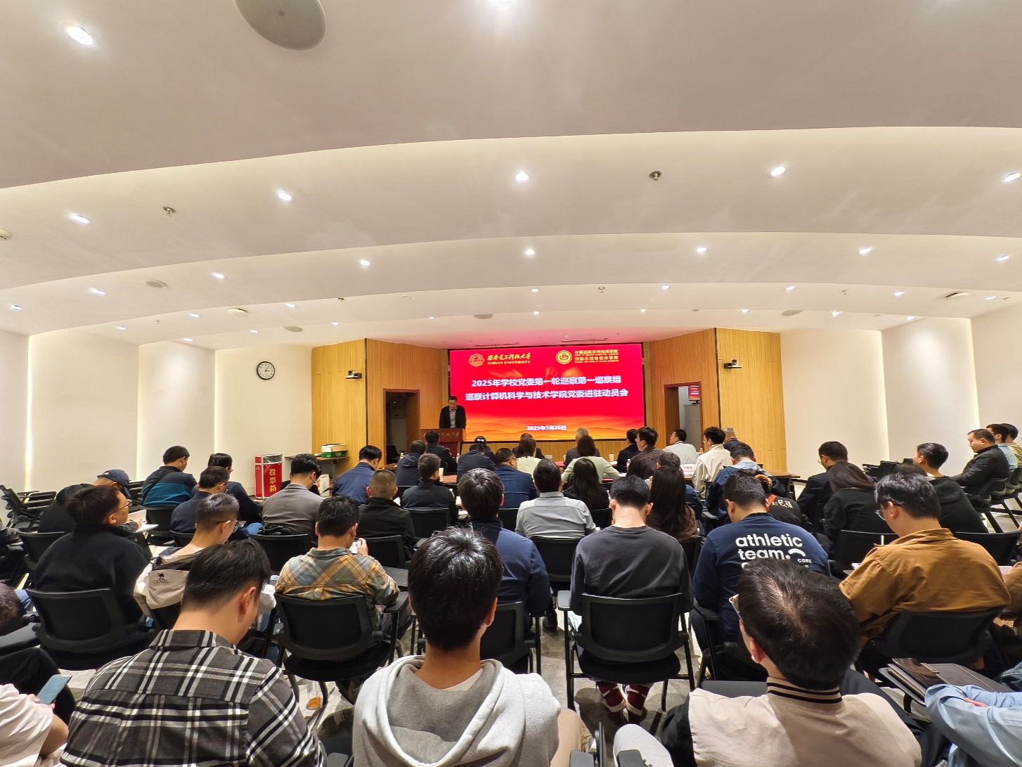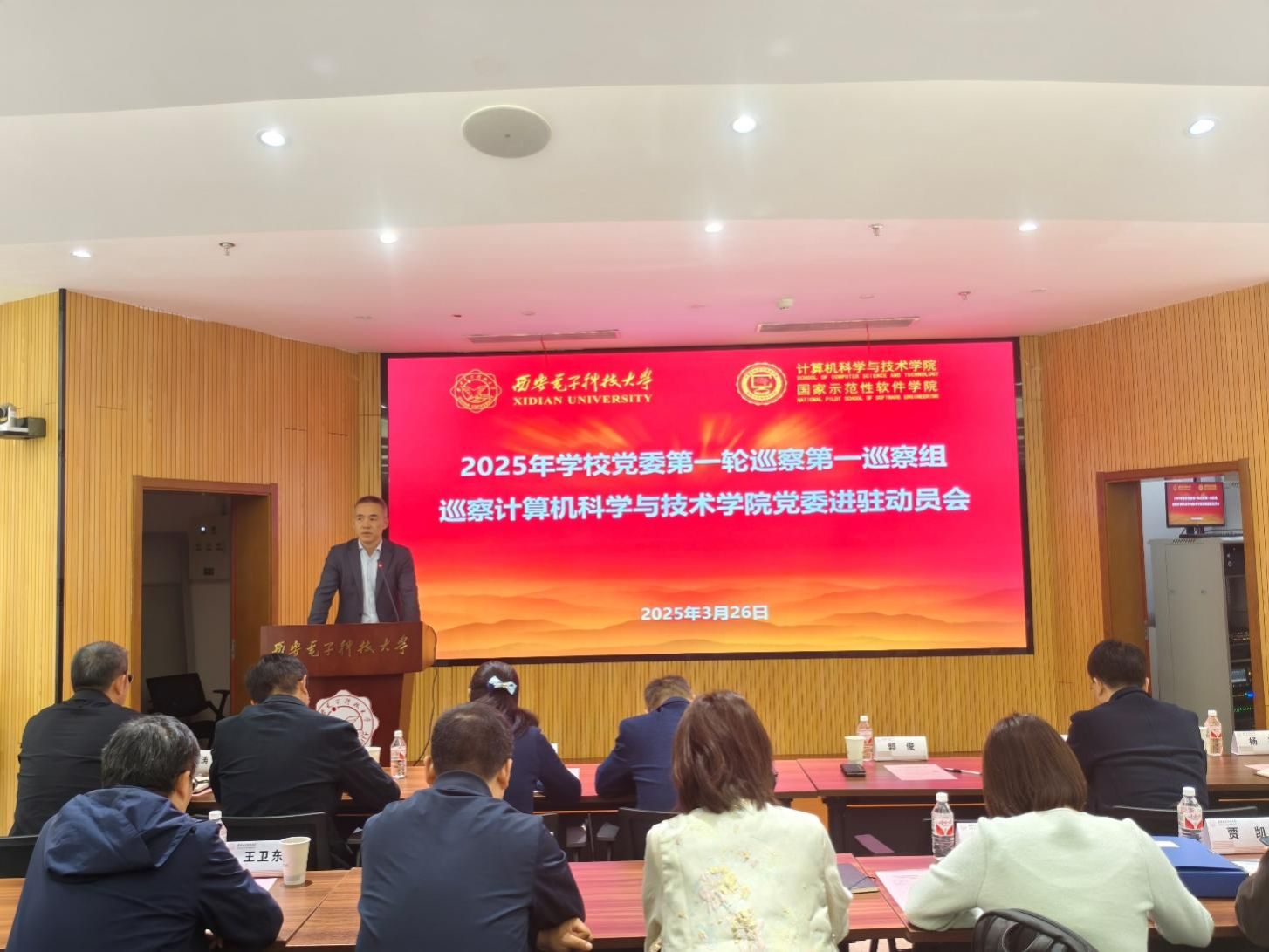 (通讯员 同榛)根据学校党委的统一部署,3月26日下午,2025年学校党委第一轮巡察第一巡察组巡察beat365亚洲体育官方网站党委进驻动员会在网安大楼A-101报告厅召开。校党委副书记、纪委书记郭俊,巡察办负责同志、巡察组全体人员、学院党政班子成员和师生代表等100余人参加。会议由学院执行院长崔江涛主持。