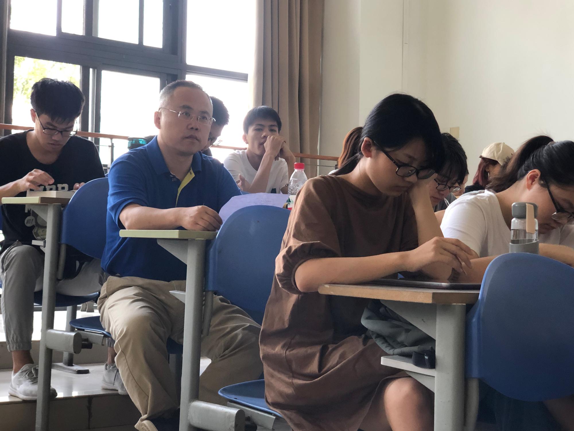 下午14时30分,李青山走进课堂,认真听取1713011班的《海量数据管理》课。课前,他与任课教师进行了详细交流,询问课程教学和1713011班学生学习等相关情况。课堂上,李青山一边听课一边认真地记录学院学生的上课状态。