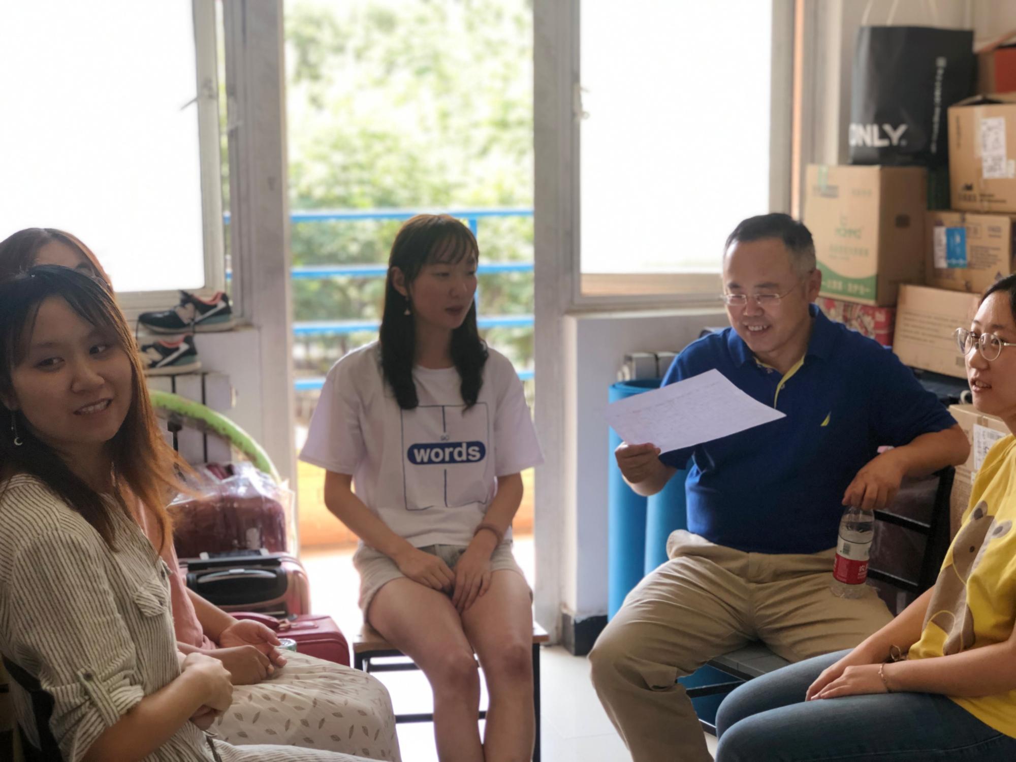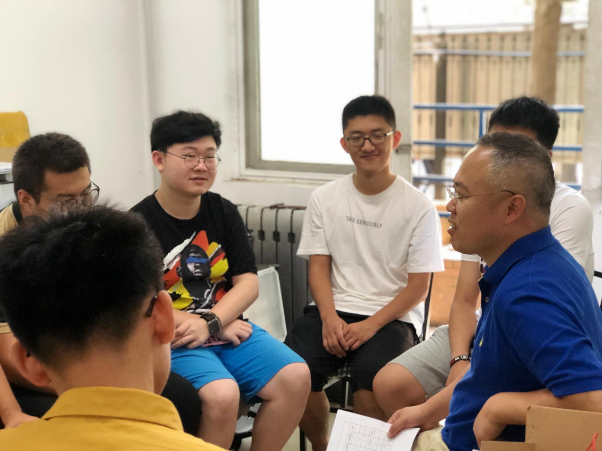 为缓解学生的紧张情绪,打开大家的话题,在学生简单自我介绍之后,李青山用自己的大学生活,跟大家拉起了家常,放松下来之后,学生们逐渐开始倾诉自己的种种困惑。当有学生说自己感觉补考复习压力很大时,李青山先询问了未通过的是什么课程,接着向学生们了解了相关课程的授课、实验、考试等细节,然后就学业指导与帮扶、心理健康等问题逐一探讨。经过了一轮刨根问底、追踪溯源式地交谈阶段,李青山感谢学生们积极发言和提出问题,他表示学院领导干部与学生寝室、班级、支部对接,与学生面对面地交流,通过对这样的一个个“小窗口”和“小样本”的深入剖析,有助于学院掌握第一手的信息,从点到线到面,从个体到局部到整体,使得学院工作更有针对性和有效性。
