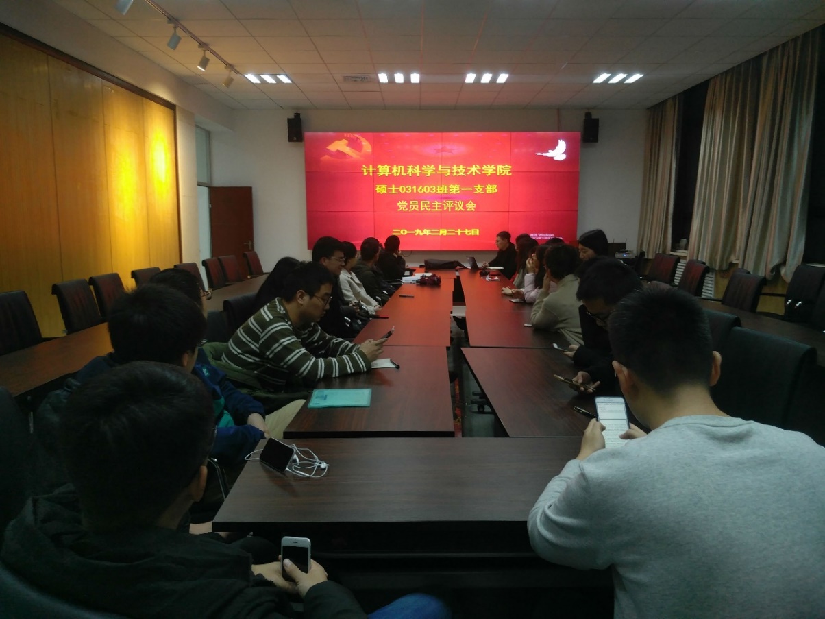 (通讯员:毛彦淇)2019年02月27日晚,beat365亚洲体育官方网站硕士031603班第一党支部在北校区主楼二区319会议室召开党员民主评议会,会议由党支部书记毛彦淇主持,27名党员同志参加会议,其中正式党员22名,预备党员5名。本次支部大会,首次采用学习强国APP中的扫码功能进行签到,支部全体党员均按时参会。