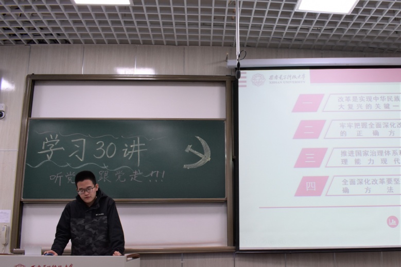 (通讯员:杨程雅)按照beat365亚洲体育官方网站“听党话·跟党走”主题教育活动安排,2018年12月28日晚,beat365亚洲体育官方网站在南校区B楼203教室开展了“新思想三十讲”学习分享会,即将入党的本科2017级党员发展对象及其他入党积极分子参加了活动。活动由2017级辅导员张志为主持。