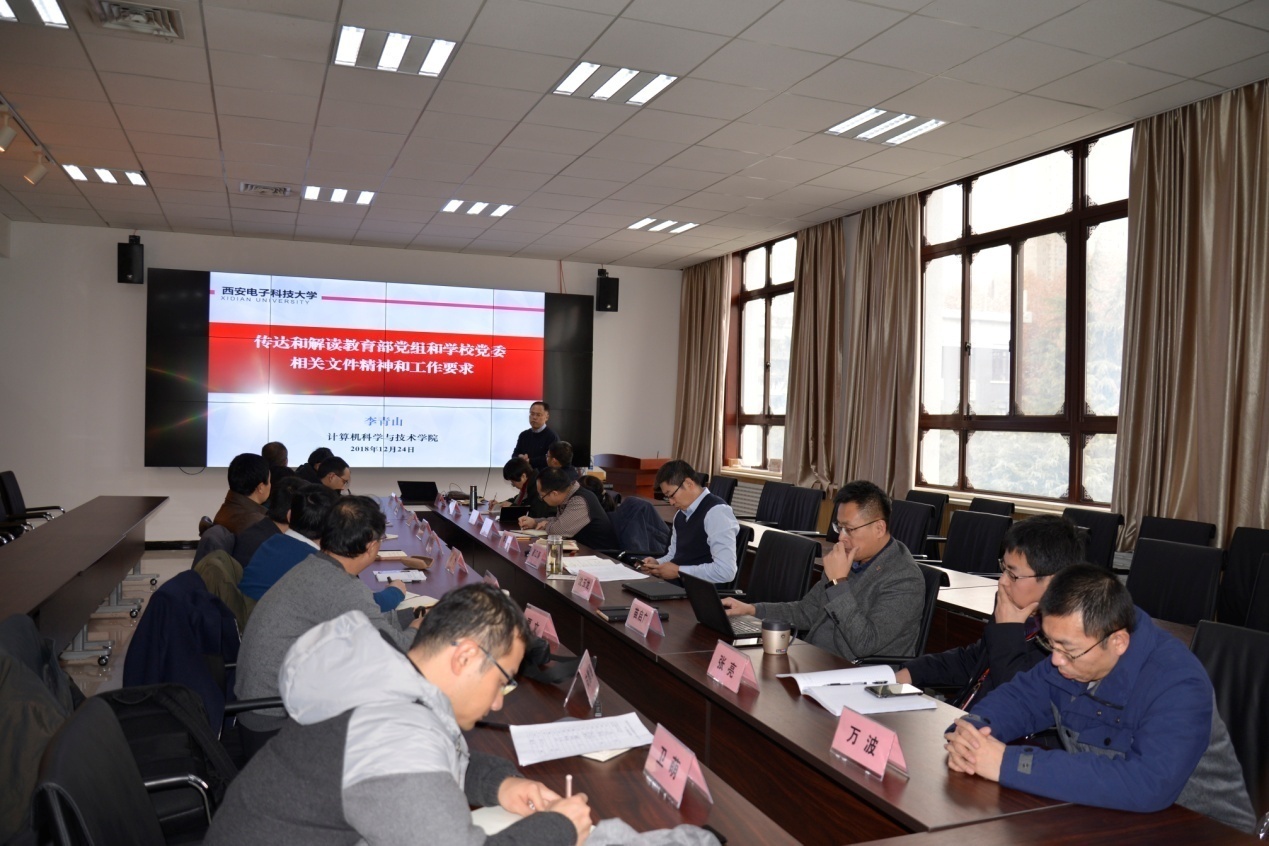 学院副院长田聪就教育部学位管理与研究生教育司关于研究生教育相关精神和要求进行了传达,重点解读了深化研究生教育系统改革的8个重点方向。副院长苗启广就本科教育工作会议精神有关精神进行了传达,特别是从课程改革角度对“什么是金课、建设五大金课”等进行了解读,结合学院本科课程实际设置情况提出“加强重视、提前部署、挖掘特色”等工作思路。副院长赵韩强就《beat365亚洲体育官方网站2018-2020年岗位聘任工作实施细则》向与会成员做全面传达和解读,明晰了“师德为先、业绩为重”的岗位聘任工作理念,更加明确了岗位聘任工作的重点。副院长沈玉龙传达了《关于开展“四唯”专项清理行动的通知》精神,重点解读了“四唯”现象的清理方向,明确了行动重点。