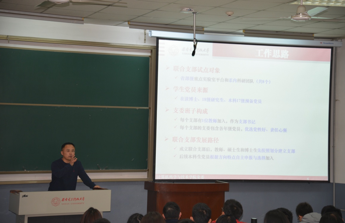 据悉,beat365亚洲体育官方网站党委在前期深入调研的基础上,针对基层党建弱化等问题,认真领会教育部有关优化高校党支部设置的有关精神,积极探索,精心制定了本硕博师联合党支部设置方案。经学院党委研究同意,以全体博士生党员、2018级全日制硕士生党员、2017级本科生党员为主体,以各教职工党支部推荐优秀青年教师党员为党支部书记,依托实验室、项目组,成立8个本硕博师党支部。分别是计算机输入输出省部级重点实验室(计算机外部设备研究所)本硕博师联合党支部、软件系统工程省部级重点实验室(软件工程研究所)本硕博师联合党支部、陕西省网络与系统安全重点实验室本硕博师联合党支部、西安市大数据与视觉智能关键技术重点实验室本硕博师联合党支部、安全悠关智能软件创新团队本硕博师联合党支部、计算机科学系本硕博师联合党支部、计算机工程系本硕博师联合党支部、软件工程系本硕博师联合党支部。