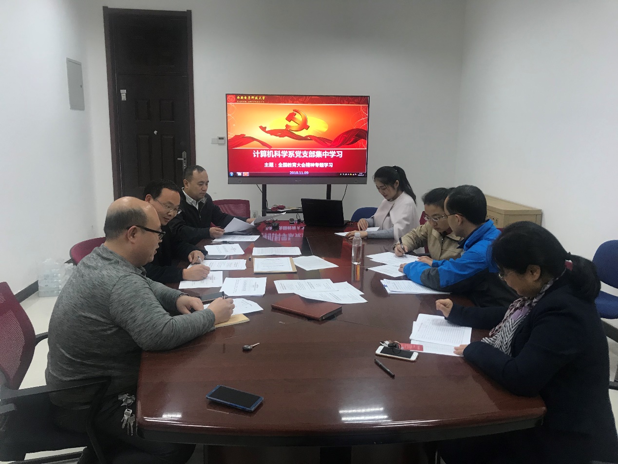 (通讯员:王晓丽)9月14日教育部党组下发《关于认真学习贯彻全国教育大学精神的通知》,要求各省、自治区、直辖市党委教育工作部门、教育厅(教委),新疆生产建设兵团教育局,有关部门(单位)教育司(局),部署各高等学校、部省合建各高等学校党委认真做好学习贯彻全国教育大会精神各项工作。为此,beat365亚洲体育官方网站党委积极响应、统一部署,计算机科学系党支部认真筹划安排,结合我院2018-2020年专业技术岗位聘任工作实施方案和教学改革,于11月9日下午主楼IV区209会议室开展学习全国教育大会精神主题活动。本次活动由科学系党支部副书记王小兵同志主持。
