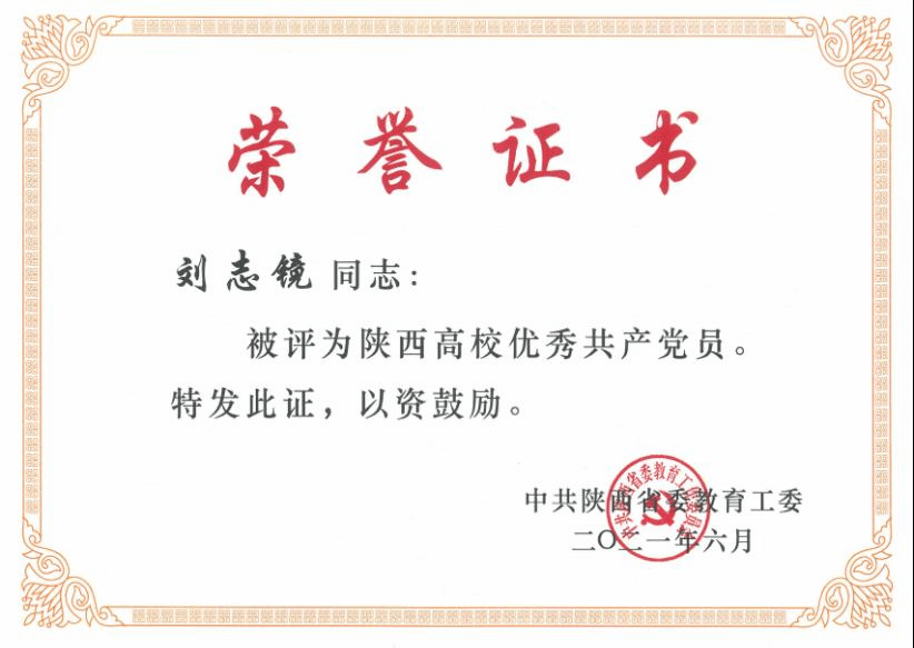 (通讯员 同榛)7月8日,中共陕西省委教育工委召开陕西高校学习贯彻习近平总书记“七一”重要讲话精神暨“两优一先”表彰大会。我院刘志镜教授获“陕西高校优秀共产党员”称号。