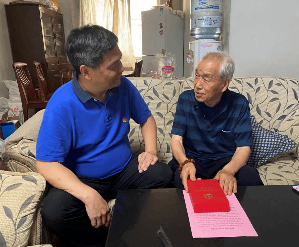 张卫东慰问于崇标老师并送上“光荣在党50年”纪念章