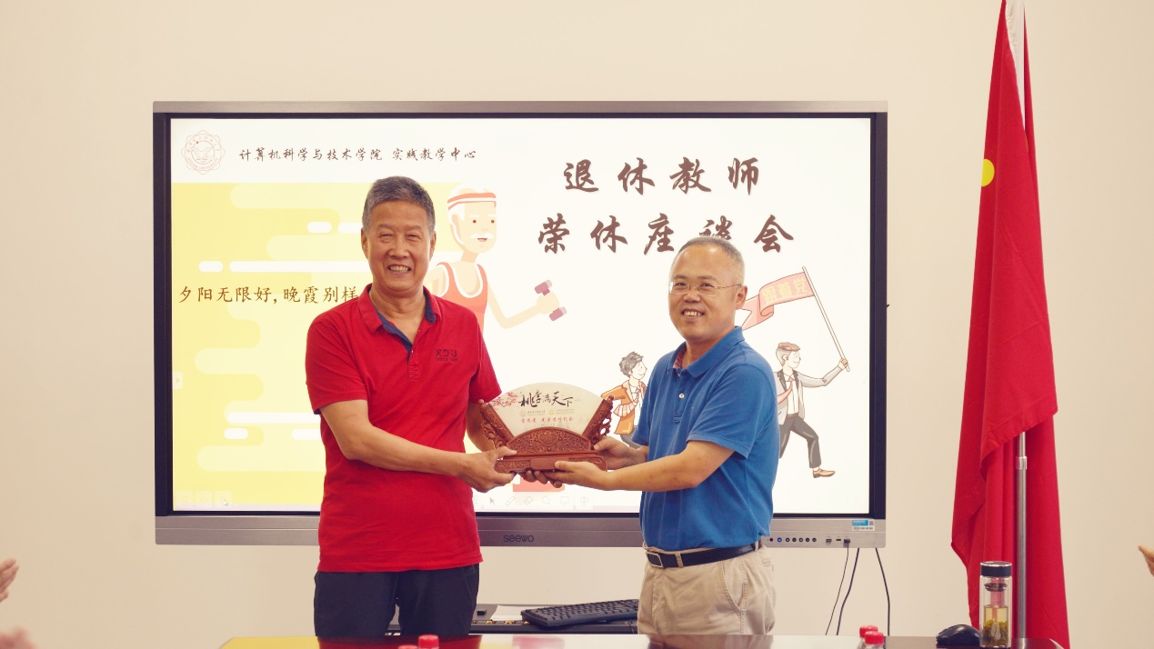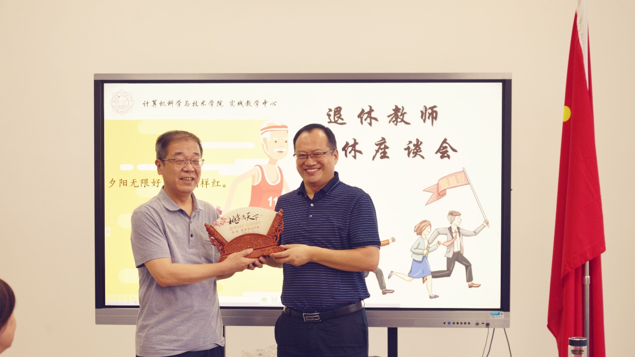 学院党委书记李青山向雷思孝赠送纪念品合影