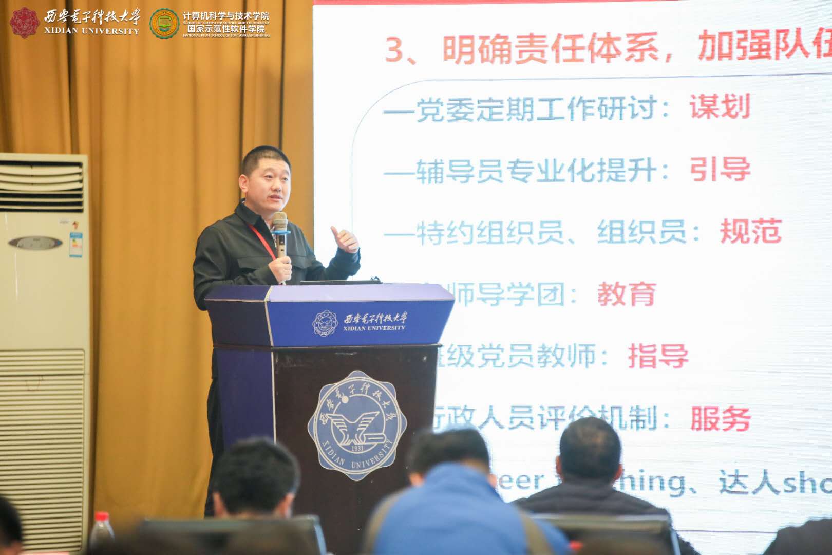 电子科技大学信息与软件工程学院党委副书记朱国斌谈到,计科院本硕博师联合党支部文化传承、支部书记和辅导员协同育人的做法值得借鉴,有利于推进全员育人、全过程育人和全方位育人。