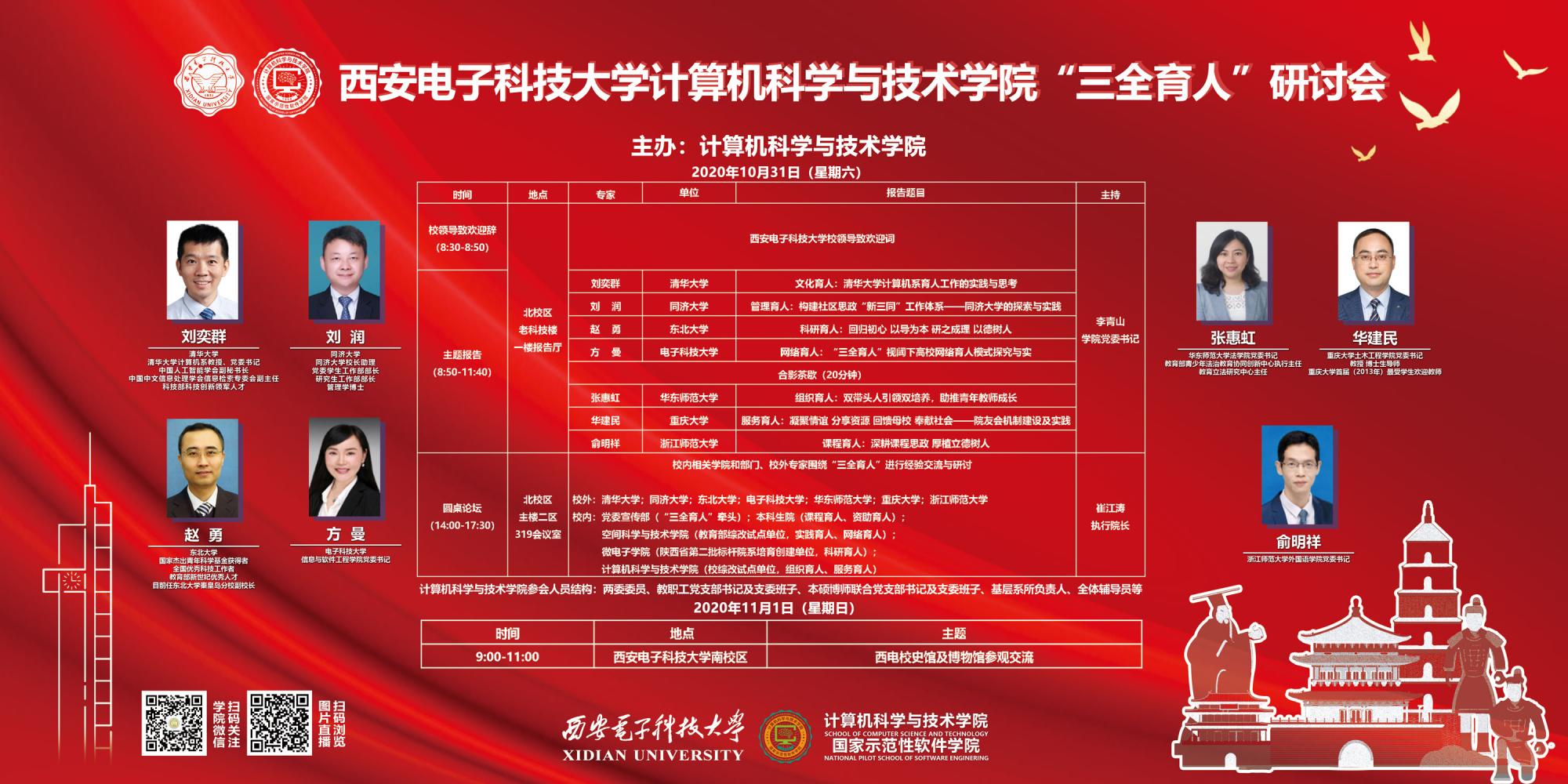 (通讯员 同榛)为认真贯彻全国高校思想政治工作会议和全国教育工作大会精神,研讨高校思想政治教育质量工程,推进学院“三全育人”综合改革试点工作,提升人才培养质量,beat365亚洲体育官方网站作为学校首批“三全育人”综合改革试点学院,于2020年10月30日至11月1日在北校区举办“三全育人研讨会”。此次研讨会由beat365亚洲体育官方网站主办,邀请清华大学、同济大学、东北大学、电子科技大学、华东师范大学、重庆大学、浙江师范大学等7所高校专家,党委宣传部、本科生院、研究生院等校内相关部门和微电子学院、空间科学与技术学院等单位相关负责人,采取主题报告和圆桌论坛的形式,围绕落实落细“十大育人体系”进行深入研讨和广泛交流。学院党政班子、两委委员、教职工支部书记和支委班子、本硕博师联合支部书记和支委班子、辅导员等共计150余人参与了此次研讨会。校党委副书记杨银堂出席研讨会并致欢迎辞。