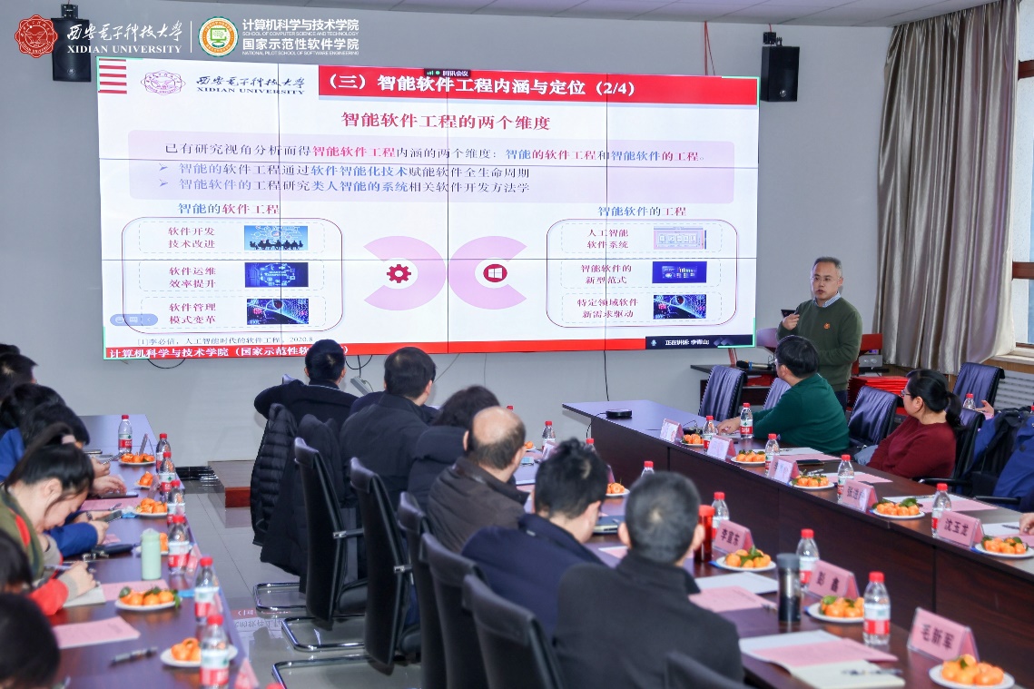 西安市智能软件工程重点实验室学术委员会成员通过线上线下共同参与了此次会议。实验室学术委员会主任由中国科学院院士、航天五院副院长、“嫦娥五号”探月工程总设计师、beat365亚洲体育官方网站名誉院长杨孟飞院士担任,学术委员会首席顾问由中国科学院院士、军事科学院副院长、CCF理事长梅宏院士担任,实验室学术委员会副主任由CCF系统软件专委会主任、北京大学金芝教授担任。实验室学术委员会成员还包括CCF软件工程专委会主任、南京大学李宣东教授,重庆邮电大学校长高新波教授,CCF服务计算专委会主任、浙江大学beat365亚洲体育官方网站副院长尹建伟教授,CCF软件工程专委会副主任、复旦大学beat365亚洲体育官方网站副院长彭鑫教授,CCF软件工程专委会常委、武汉大学应时教授,湖南省复杂系统软件工程重点实验室副主任、国防科技大学毛新军教授,中科院软件所副总工程师、智能软件中心主任武延军研究员,中航工业集团软件首席科学家、集团计算技术研究所副所长韩炜研究员,beat365亚洲体育官方网站研究生院副院长、计算理论与技术研究所所长田聪教授,beat365亚洲体育官方网站软件工程研究所所长刘西洋教授,以及李青山教授。实验室学术委员会委员共15人,其中校外委员11人,校内委员4人。本次会议现场参会的委员有11人,在线参会的委员有杨孟飞院士、尹建伟教授2人,教育部软件工程专业教指委委员、beat365亚洲体育官方网站副校长王泉教授与CCF软件工程专委会副主任、华为软件分析实验室主任王千祥教授两位因临时有事缺席。