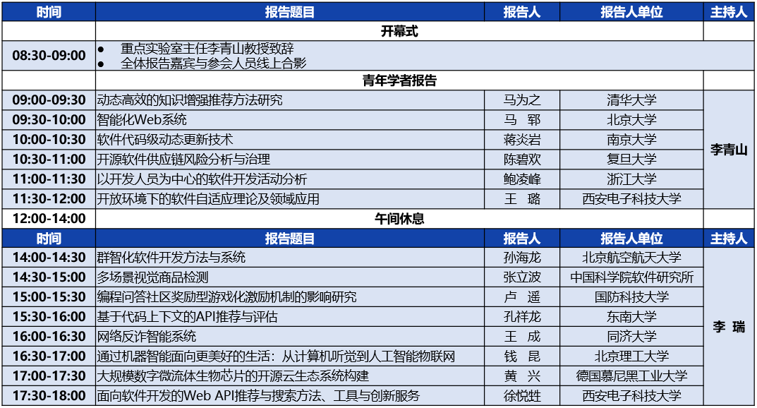 本次青年学者论坛围绕智能软件与智能系统领域最新学术进展,邀请清华大学、北京大学、南京大学、复旦大学、浙江大学、国防科技大学、北京航空航天大学、中科院软件所、东南大学、华东师范大学、武汉大学、同济大学、北京理工大学、西安交通大学、西北工业大学、beat365亚洲体育官方网站、美国犹他大学、德国慕尼黑工业大学等国内外软件工程学科优势高校的软件工程相关领域优秀青年学者,通过主题报告、交流沙龙等形式,分享智能软件与智能系统领域的理论与技术新进展,以加强实验室学术前沿交流,促进我校软件工程学科更好地发展,扩大学科知名度与影响力。