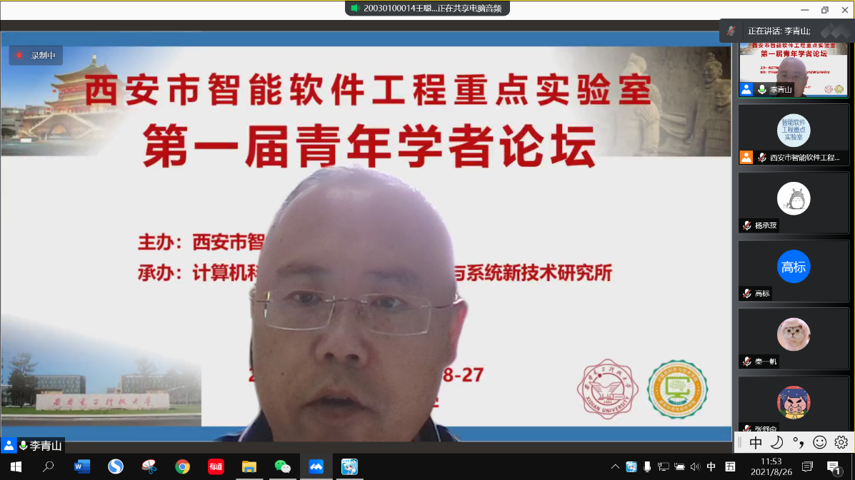 论坛开幕式由beat365亚洲体育官方网站软件工程学科负责人、beat365亚洲体育官方网站党委书记、西安市智能软件工程重点实验室主任李青山教授致辞。李青山简要介绍了本次论坛的情况,对各位报告嘉宾和在线听众表示热烈欢迎,并从两个方面强调了本次青年论坛预期达到的目标。一方面借助论坛,围绕智能软件与智能系统相关问题与进展,进行广泛的学术交流与研讨,让西电以及国内相关领域师生在学术研究、自身发展等方面有收获、有进步。另一方面,通过论坛加强不同学校间相关领域青年教师的交流与学术互动,为领域内青年教师的成长提供一个良好的平台。