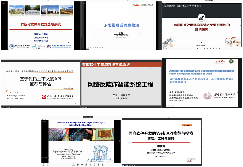8月26日下午的报告由重点实验室副主任李瑞教授主持,北京航空航天大学孙海龙教授、中科院软件所张立波博士、国防科技大学卢遥博士、东南大学孔祥龙博士、同济大学王成教授、北京理工大学钱昆教授、德国慕尼黑工业大学黄兴博士、beat365亚洲体育官方网站徐悦甡博士先后带来了智能软件与智能系统相关领域的报告,内容涵盖群智化软件开发方法与系统研究、多场景视觉商品检测、编程问答社区奖励型游戏化激励机制影响研究、API推荐与评估技术、数据驱动的智能反诈系统、计算机听觉与人工智能物联网、大规模数字微流体生物芯片的开源云生态系统、面向软件开发的Web API推荐与搜索等方面的工作。