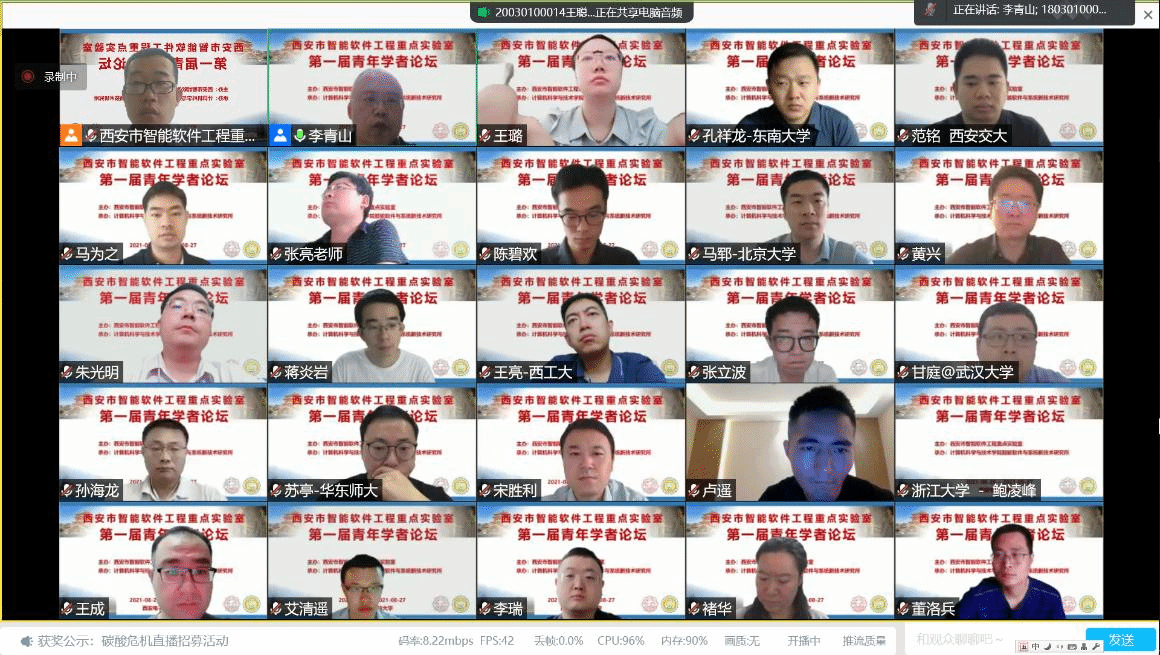 (通讯员 徐悦甡)2021年8月26日至8月27日,beat365亚洲体育官方网站西安市智能软件工程重点实验室第一届青年学者论坛成功举办。本次论坛由beat365亚洲体育官方网站智能软件与系统新技术研究所承办,采用腾讯会议与在线直播两种方式线上进行。论坛围绕智能软件与智能系统领域最新学术进展,邀请了清华大学、北京大学、南京大学、复旦大学、浙江大学、国防科技大学、北京航空航天大学、中科院软件所、东南大学、华东师范大学、武汉大学、同济大学、北京理工大学、西安交通大学、西北工业大学、beat365亚洲体育官方网站、美国犹他大学、德国慕尼黑工业大学等国内外软件工程学科优势高校的20位软件工程相关领域优秀青年学者,通过主题报告、交流沙龙等形式,分享了智能软件与智能系统领域的理论与技术新进展,讨论了相关领域的学术前沿,并就我校软件工程学科的建设与发展进行了交流。论坛吸引了国内外软件工程相关领域师生与从业人员的广泛参与,腾讯会议室同时在线人数超过700人,B站在线直播同时观看人数超过2000人。