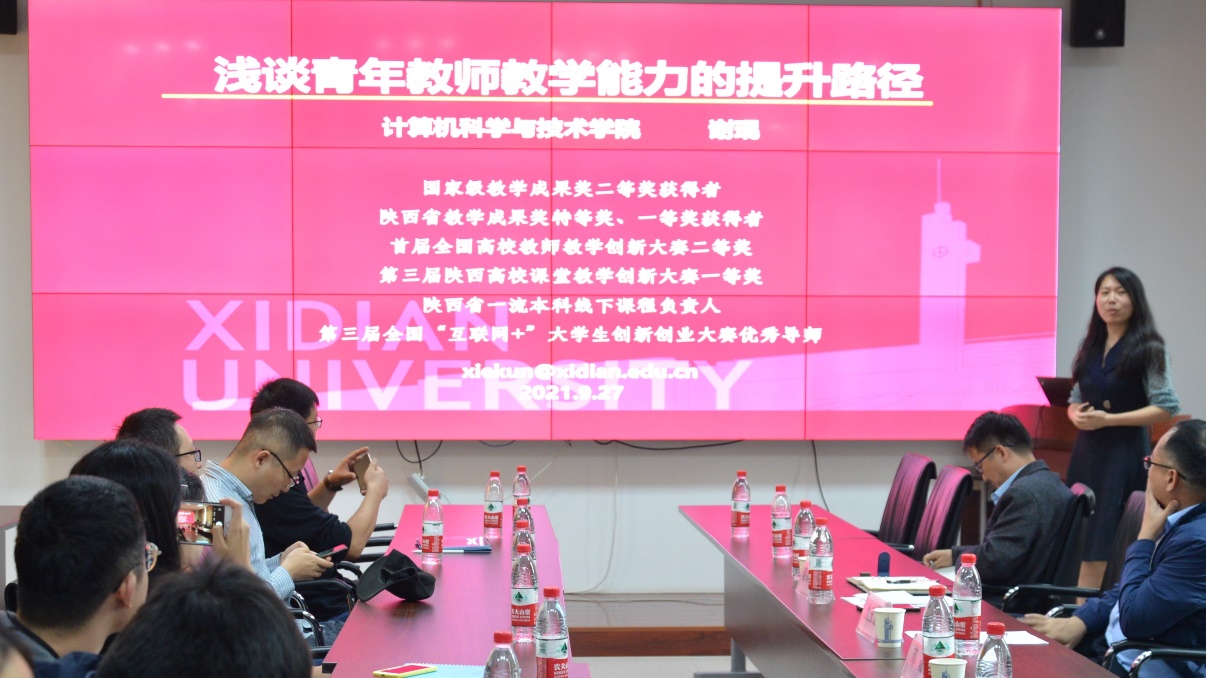 谢琨作了题为“浅谈青年教师教学能力的提升路径”的专题报告,她从如何做好教学设计、教学创新思路、以赛促教,以赛促建三个方面讲述了青年教师教学成长的必经之路,详细分享了教学设计及创新思路,从个人亲身经历分析了学校教学竞赛过程和关键点。