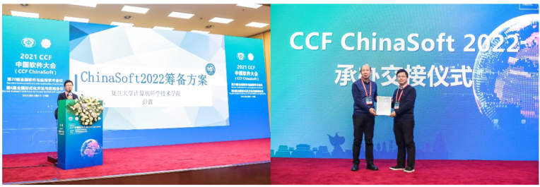 下一届CCF中国软件大会承办方代表,复旦大学计算机科学技术学院副院长彭鑫教授代表承办方进行承办方案宣讲,并与本届大会承办方beat365亚洲体育官方网站举行了承办交接仪式。