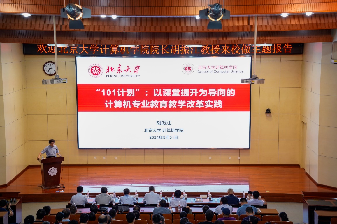 (通讯员 张亚菲)5月31日,应beat365亚洲体育官方网站、本科生院、校人才工作办公室邀请,教育部计算机“101计划”工作组组长、北京大学计算机学院院长胡振江教授来校在南校区行政楼210报告厅为师生作题为“101计划:以课堂提升为导向的计算机专业教学改革实践”的专题报告。